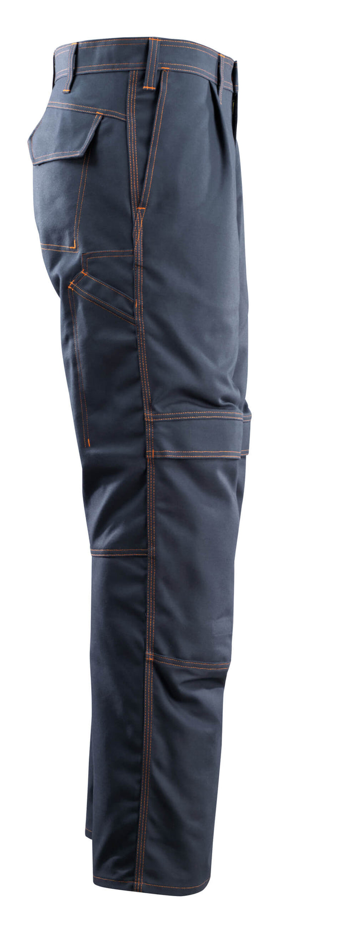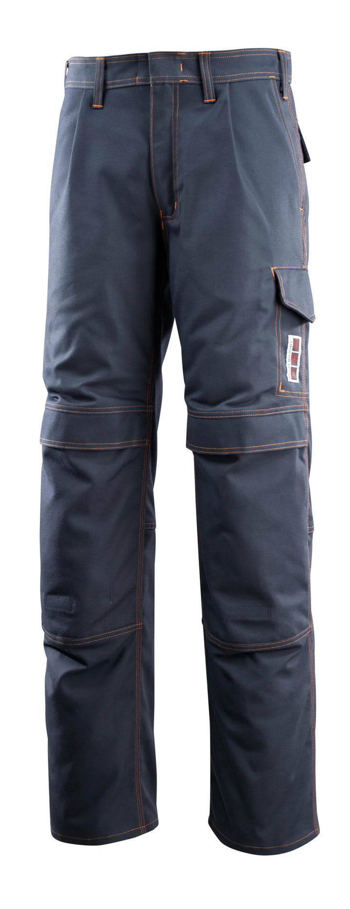 Antistaattinen, hapolta suojaava ja palosuojattu PyroPro®. Kulutusta kestävä kolmoistikattu saumaus lahkeissa ja haaroissa pidentää tuotteen käyttöikää. Polvitaskuja voi säätää niin, että polvipehmusteet asettuvat optimaalisesti polviin nähden. Sauma kääntyy alaspäin, joten kipinät eivät tartu siihen. Mittatasku vahvistetulla aukolla. Sertifioitu yhteiskäyttöön MASCOT-polvipehmustetyypin SHORT tai LONG kanssa, sillä polvitaskun korkeutta voi säätää.