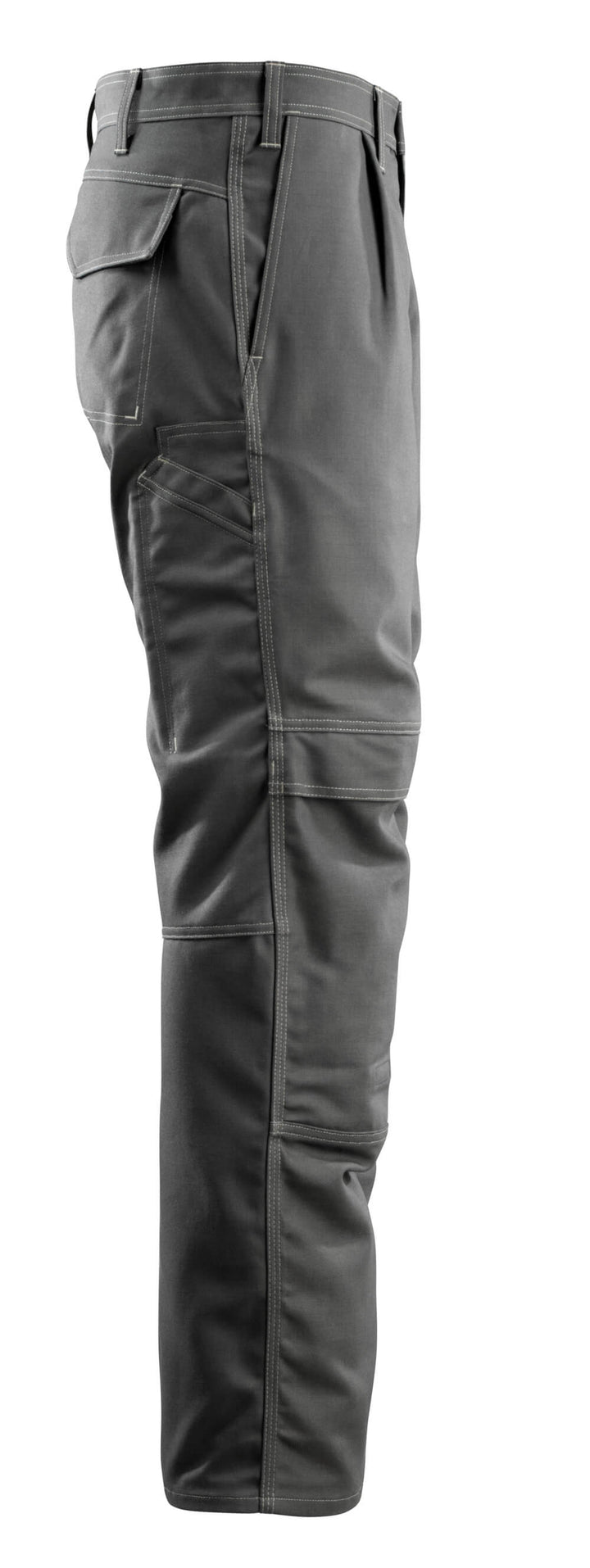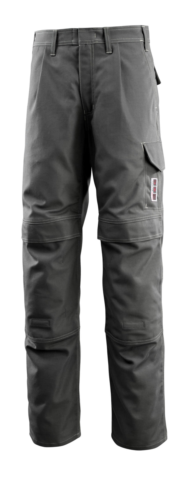 Antistaattinen, hapolta suojaava ja palosuojattu PyroPro®. Kulutusta kestävä kolmoistikattu saumaus lahkeissa ja haaroissa pidentää tuotteen käyttöikää. Polvitaskuja voi säätää niin, että polvipehmusteet asettuvat optimaalisesti polviin nähden. Sauma kääntyy alaspäin, joten kipinät eivät tartu siihen. Mittatasku vahvistetulla aukolla. Sertifioitu yhteiskäyttöön MASCOT-polvipehmustetyypin SHORT tai LONG kanssa, sillä polvitaskun korkeutta voi säätää.