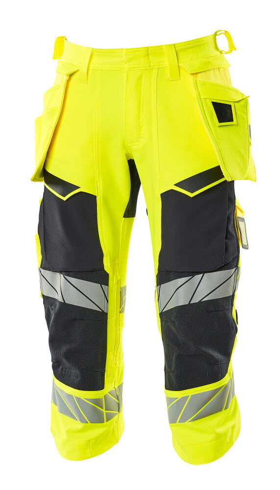 ¾-housut riipputaskuilla - 19049-711 - hi-vis keltainen/tumma laivastonsininen