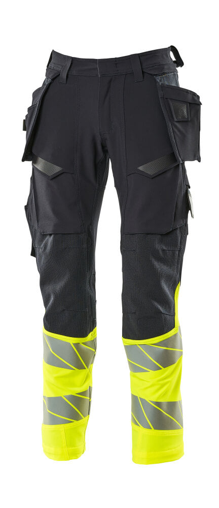 Housut riipputaskuilla - 19131-711 - tumma laivastonsininen/hi-vis keltainen