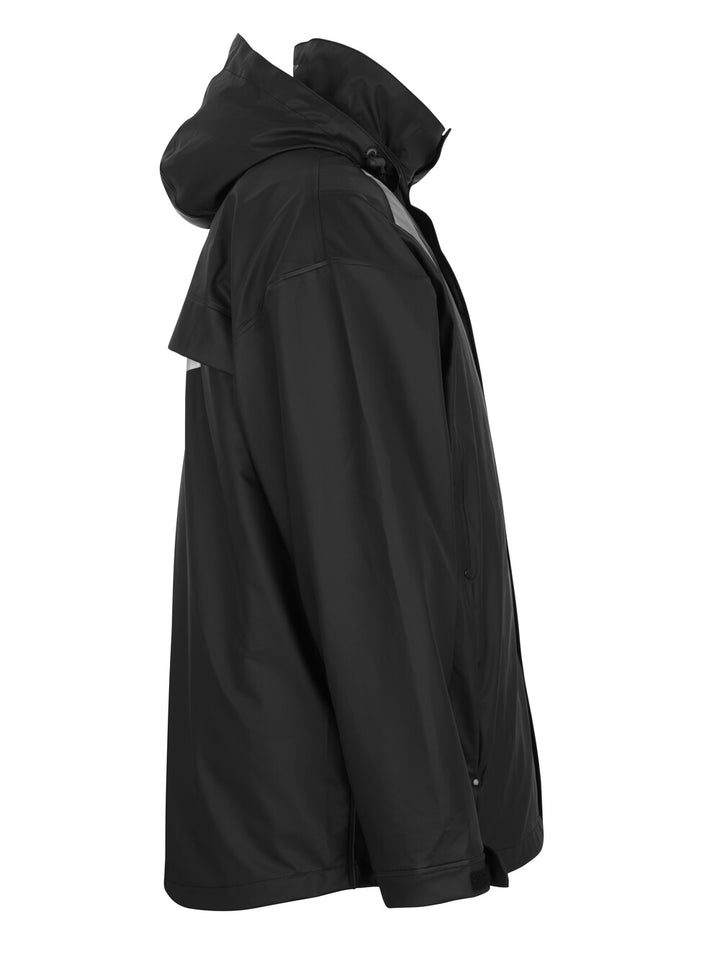 Tuulen- ja vedenpitävä. Vedenpitävissä materiaaleissa on hitsatut saumat, joista sade ei pääse sisään. Tilava istuvuus säädettävällä housunkauluksella. Irrotettava huppu. Kaulus istuu hyvin kaulan ympärillä ja pitää kylmän loitolla.