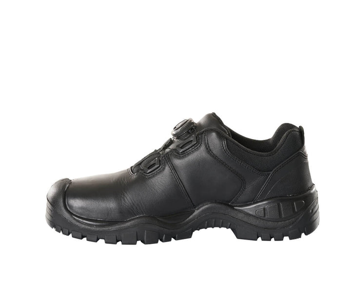 BOA® Fit System on valmistettu erittäin laadukkaista ja kulutuksenkestävistä materiaaleista. BOA® Fit System takaa täydellisen istuvuuden nopeasti, vaivattomasti ja tarkasti. Ergonominen alumiinivarvassuoja antaa lisäsuojaa uloimmille varpaille ja lisää varpaiden liikkumavapautta. Joustava tekstiilinaulasuoja lisää mukavuutta ja estää kylmäsillat. Tekstiilinaulasuoja on suurempi kuin teräksinen, joten se suojaa paremmin nauloilta ja muilta teräviltä esineiltä. MASCOT:in patentoiman monitoimipohjajäykisteen ansiosta jalkineet sopivat epätasaisille alustoille. PU/kumipohja on suunniteltu erityisen vaativiin olosuhteisiin, lämmönkestävä 300°C asti. Pohja kestää öljyä ja bensiiniä. ESD-hyväksytyt EN IEC 61340-4-3: 2018 + EN 61340-5-1: 2016.