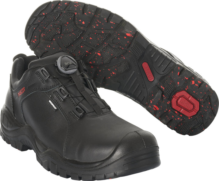 BOA® Fit System on valmistettu erittäin laadukkaista ja kulutuksenkestävistä materiaaleista. BOA® Fit System takaa täydellisen istuvuuden nopeasti, vaivattomasti ja tarkasti. Ergonominen alumiinivarvassuoja antaa lisäsuojaa uloimmille varpaille ja lisää varpaiden liikkumavapautta. Joustava tekstiilinaulasuoja lisää mukavuutta ja estää kylmäsillat. Tekstiilinaulasuoja on suurempi kuin teräksinen, joten se suojaa paremmin nauloilta ja muilta teräviltä esineiltä. MASCOT:in patentoiman monitoimipohjajäykisteen ansiosta jalkineet sopivat epätasaisille alustoille. PU/kumipohja on suunniteltu erityisen vaativiin olosuhteisiin, lämmönkestävä 300°C asti. Pohja on kylmänkestävä ja erityisen luistamaton, joten pystyt liikkumaan tukevasti myös kylmissä olosuhteissa. Pohja kestää öljyä ja bensiiniä. Vedenpitävä ja hengittävä MASCOTEX®-kalvo varmistaa, että jalat pysyvät kuivina koko päivän.