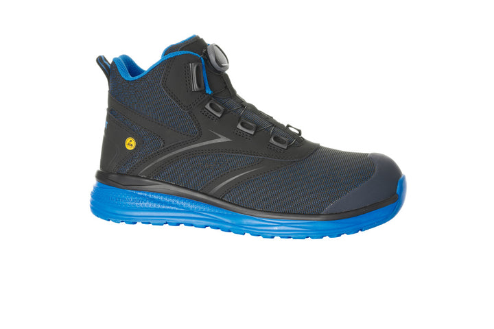 BOA® Fit System on valmistettu erittäin laadukkaista ja kulutuksenkestävistä materiaaleista. BOA® Fit System takaa täydellisen istuvuuden nopeasti, vaivattomasti ja tarkasti. Hengittävä pintamateriaali päästää kosteuden ja lämmön haihtumaan ja varmistaa jaloille mukavat olosuhteet. Pintamateriaali on kulutuksenkestävää polyesteriä. Varvassuoja on valmistettu erittäin kevyestä ja vahvasta hiilikuidusta. Se kestää iskuja ja painetta poikkeuksellisen hyvin. XL EXTRALIGHT® EVA -välipohja ja kumipohja äärimmäisen liukastumisen estolla. Pohja kestää öljyä ja bensiiniä. ESD-hyväksytyt EN IEC 61340-4-3: 2018 + EN 61340-5-1: 2016. Vakautettu MASCOTin patentoidulla monitoimipohjajäykisteellä.