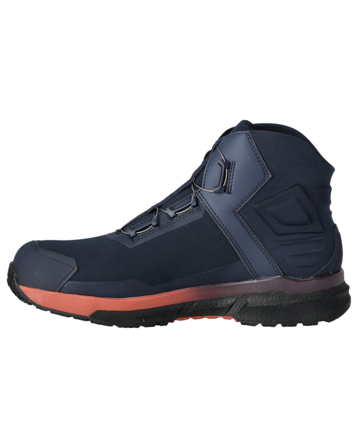 Turvakenkä ammattilaisille, jotka tarvitsevat keveyttä, suojaa ja nopeaa säätöä. F1681-704 ratkaisee perinteisen ongelman: raskaat ja jäykät turvakengät. BOA® Fit System takaa napakan istuvuuden yhdellä kierroksella, ja eTPU/EVA-välipohja hiilikuitulevyllä (carbon plate) palauttaa energiaa joka askeleella ja vähentää väsymystä pitkän työpäivän aikana. Composite-kärki ja MASCOLAYER®-naulaanastumissuoja suojaavat kevyesti mutta tehokkaasti. Nilkkurimitoitus tukee jalkaa ja antaa varmuutta liikkeeseen.
