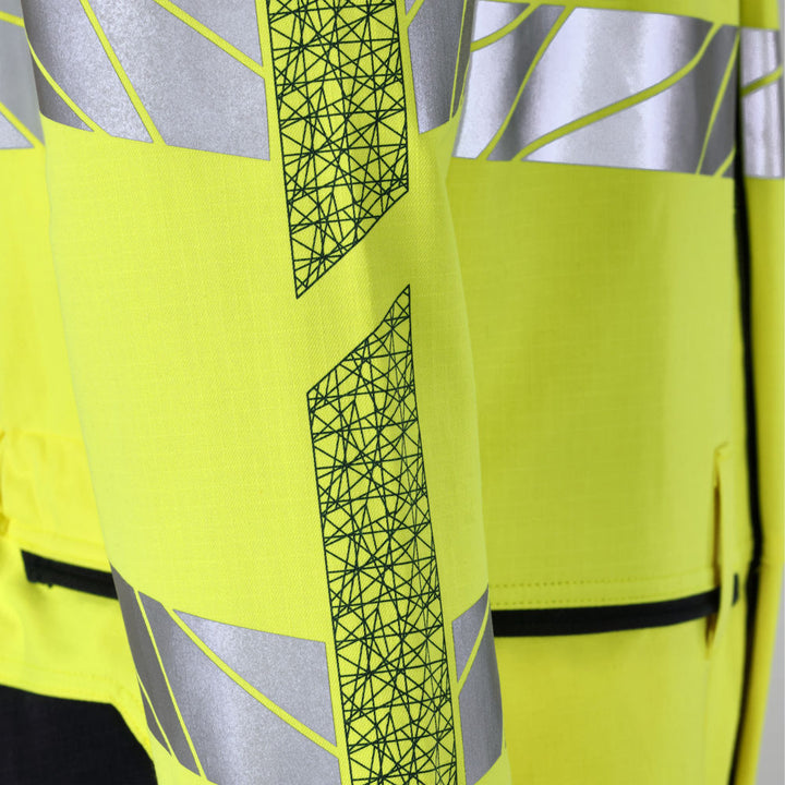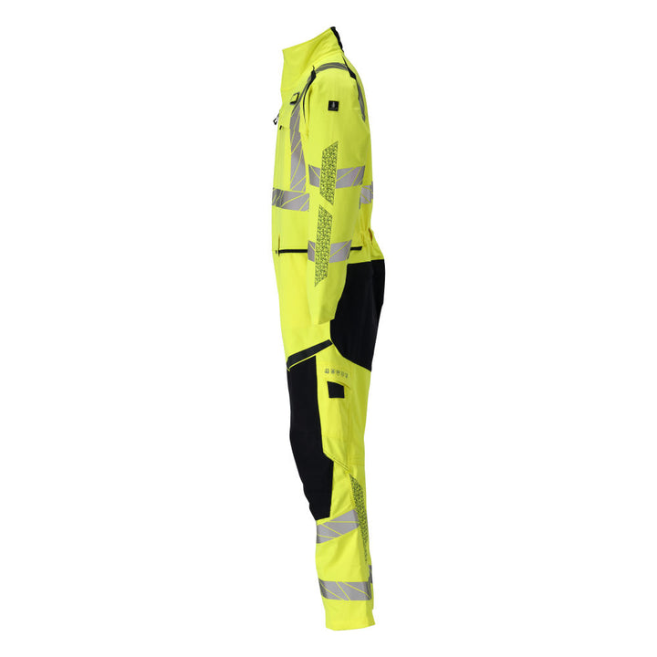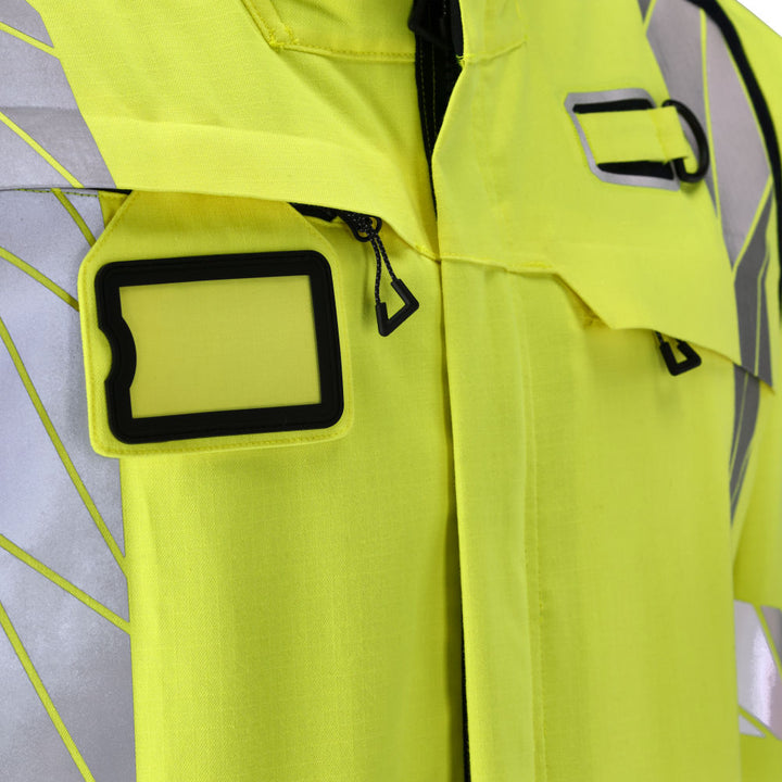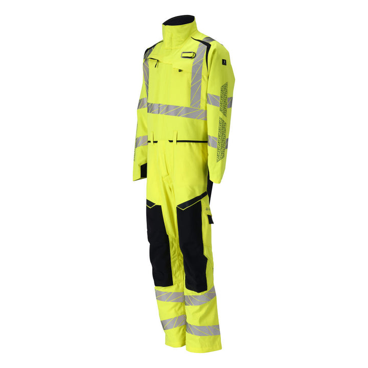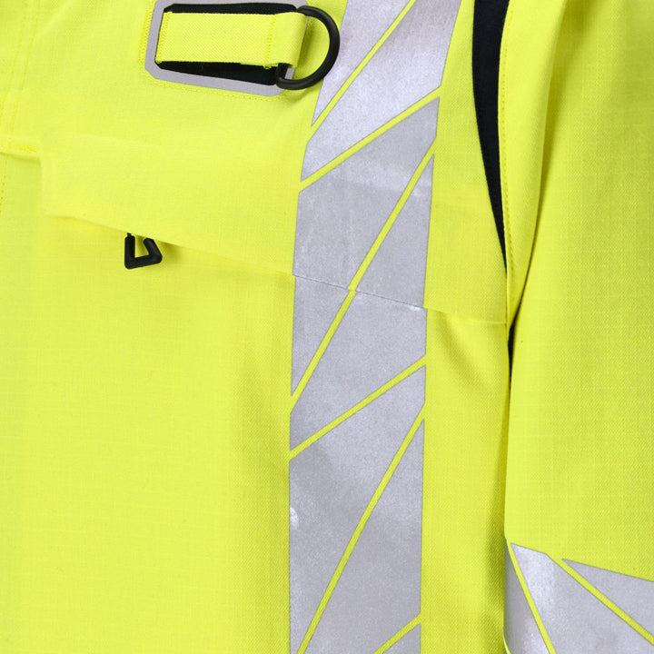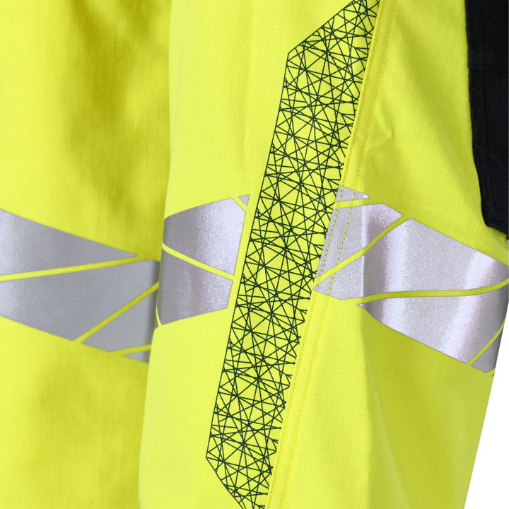 Umpihaalari ammattilaisille, jotka tarvitsevat korkeimman näkyvyysluokan ja useita sertifioituja suojauksia. Tavallinen haalari ei anna riittävää suojaa valokaarelta ja kemikaaleilta – tässä mallissa antistaattiset, hapon- ja palosuojatut ominaisuudet yhdistyvät valokaarisuojaukseen ja Hi-Vis luokka 3 -näkyvyyteen. Kiinteän kankaan ja stretch-materiaalin yhdistelmä takaa liikkumisvapauden, ja CORDURA®-vahvikkeet kestävät kulutusta. Riipputaskut voi kiinnittää Click Pocket Systemillä, ja lahkeita voi pidentää 3 cm avaamalla punaiset saumat.